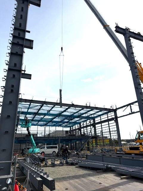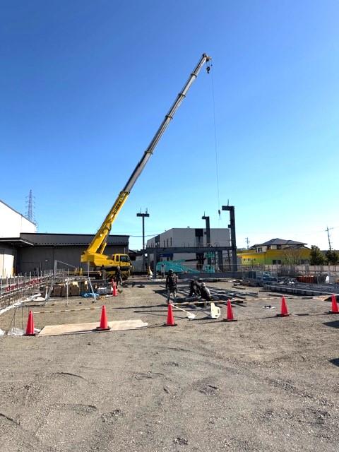 静岡県藤枝市善左衛門にて鉄骨建方を行いました。